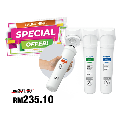 STAGES OF WATER TREATMENT: Set of three replacement cartridges: Carbon pre-filter, Aragon-Bio 0.4 micron, Post filtration with mineralization.